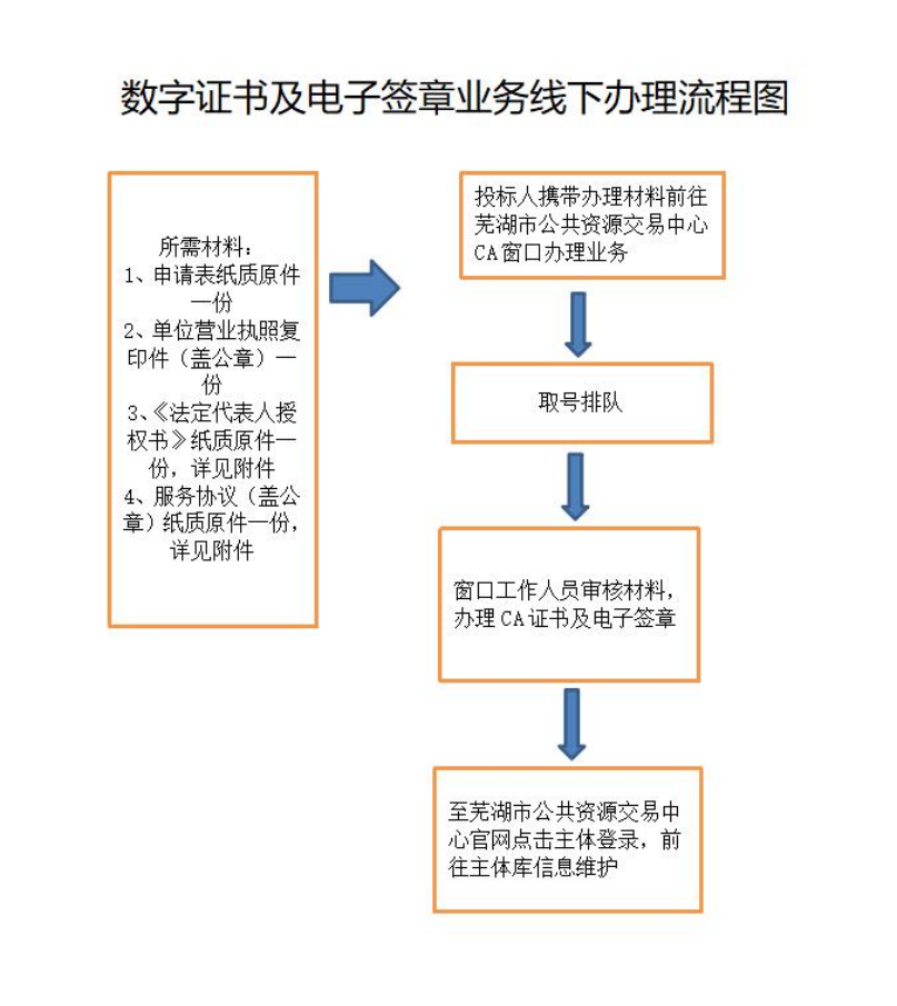 需要线下办理该业务的用户携所需材料表中1-4项至交易中心CA窗口,窗口工作人员对材料进行审核后为各用户办理CA数字证书补办业务。