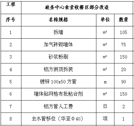 芜湖市政务文化中心食堂收餐台改造项目工作量清单及改造效果图(包括但不限于):