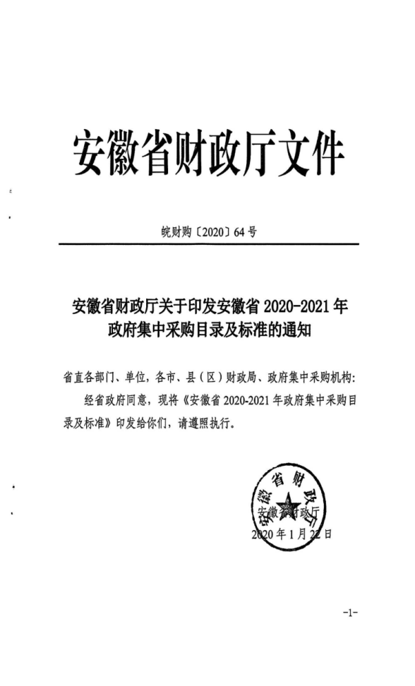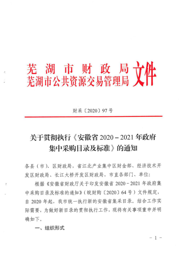 财采[2020]97号关于贯彻执行《安徽省2020-2021年政府集中采购目录及标准》的通知