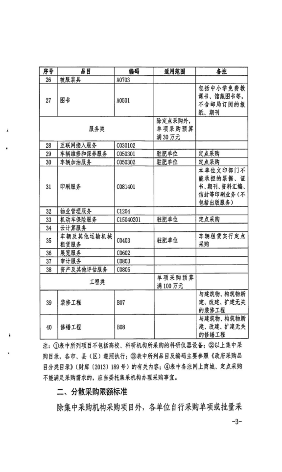 集中采购目录及限额标准等