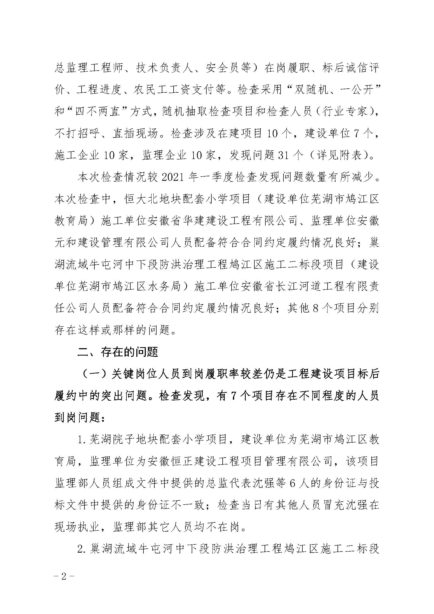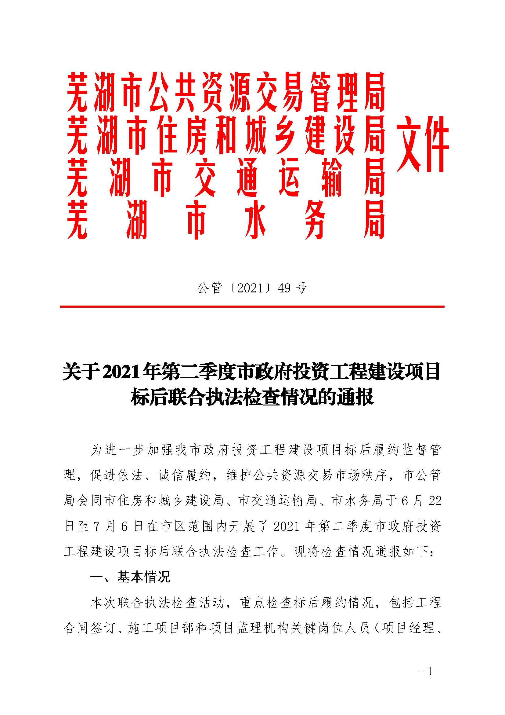 关于2021年第二季度市政府投资工程建设项目标后联合执法检查情况的通报