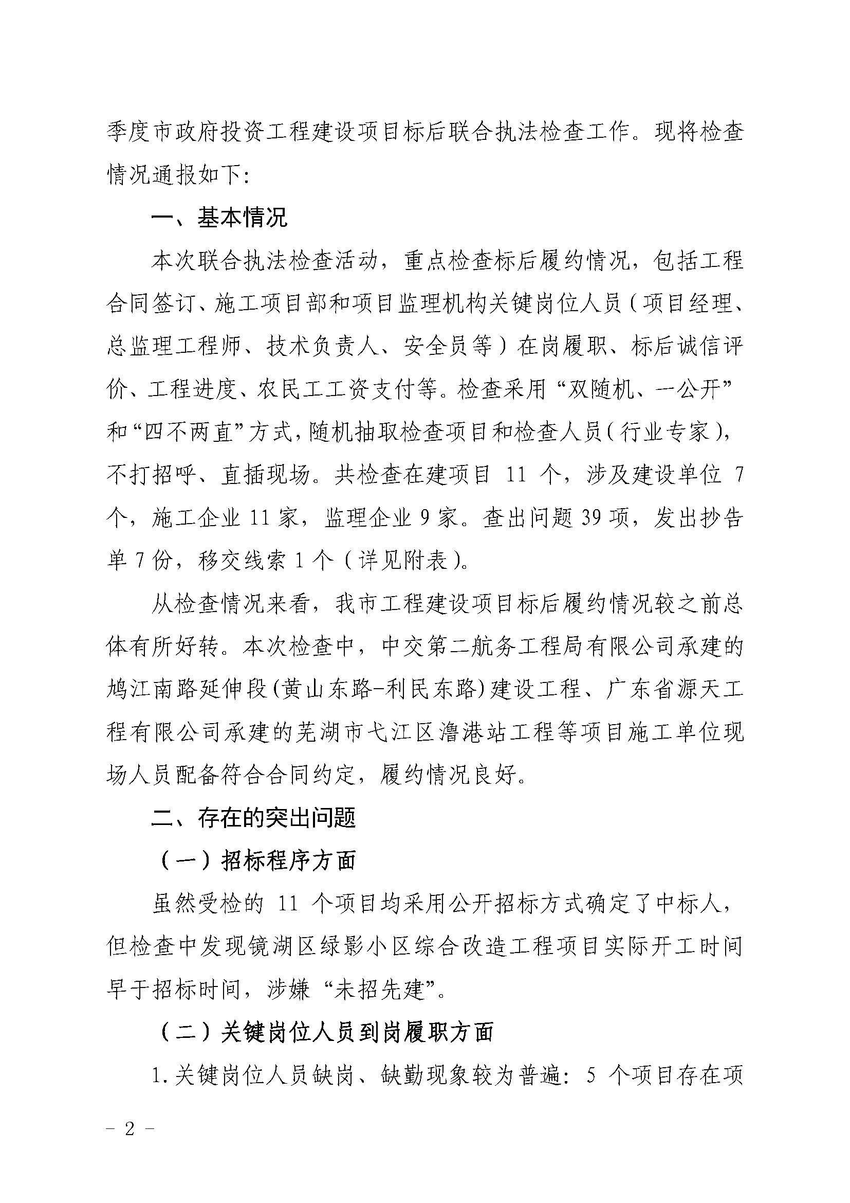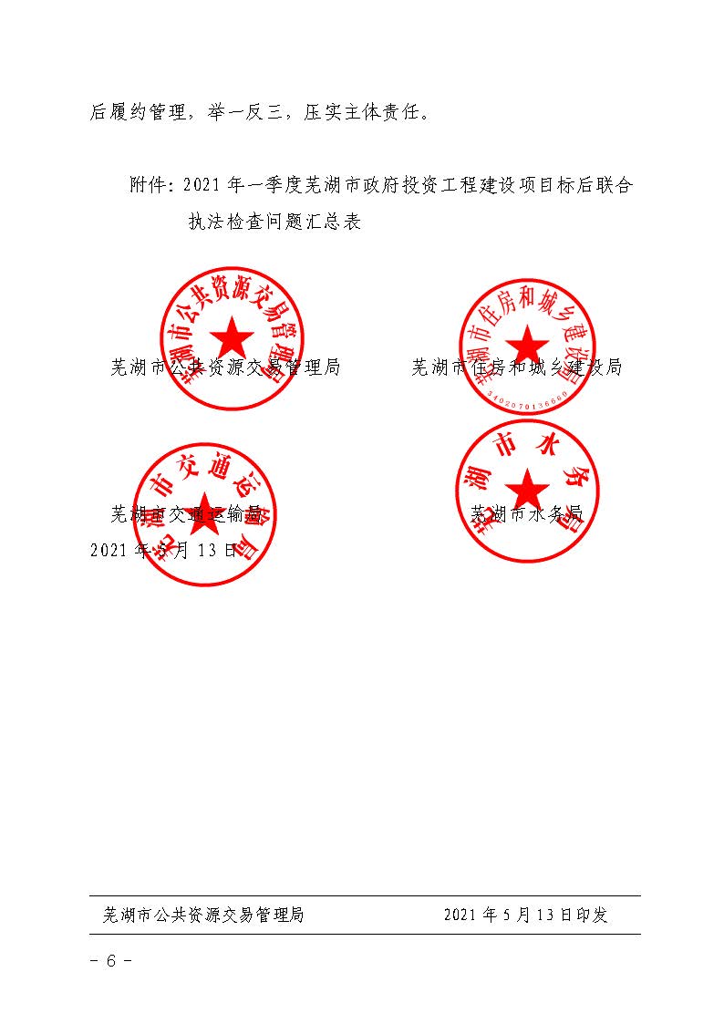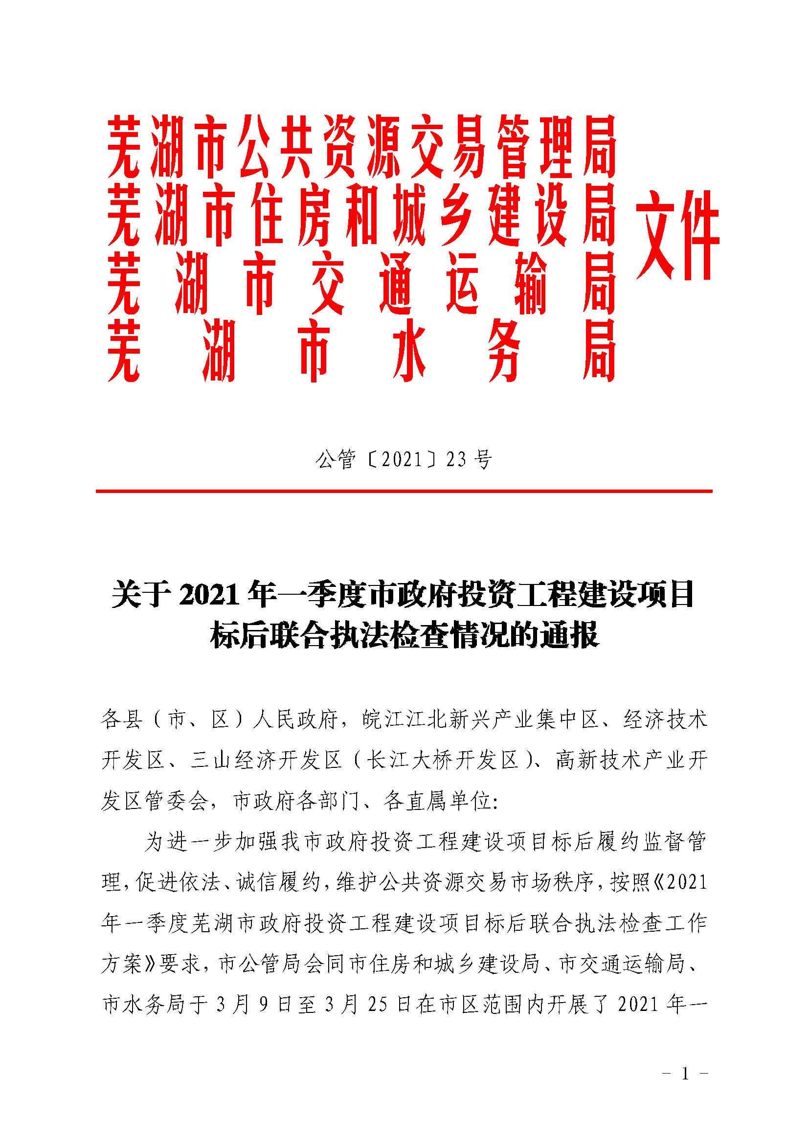 关于2021年一季度市政府投资工程建设项目标后联合执法检查情况的通报