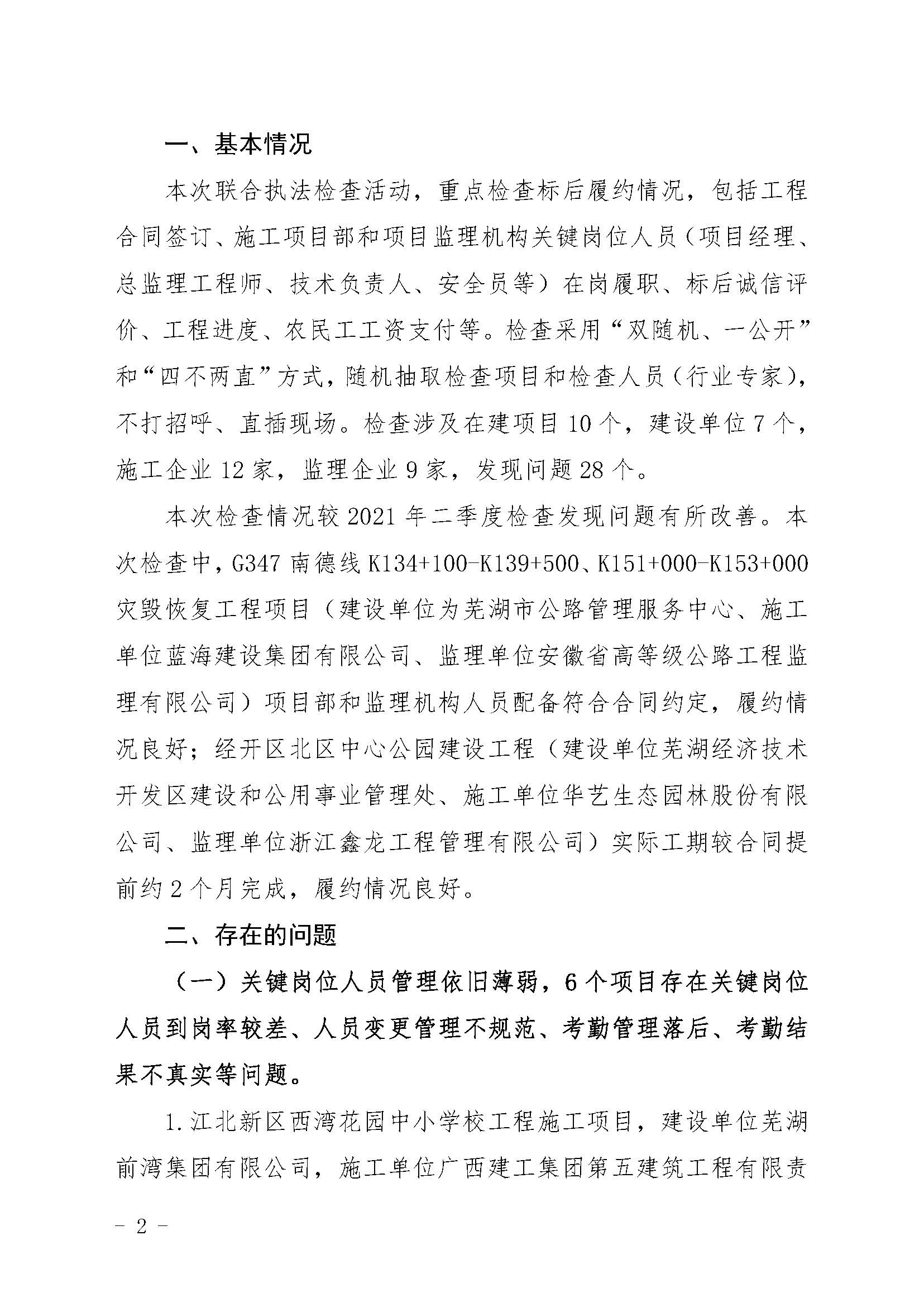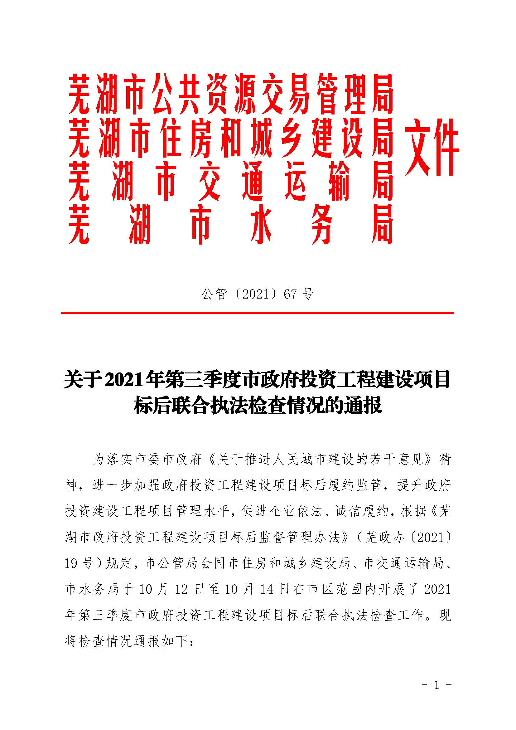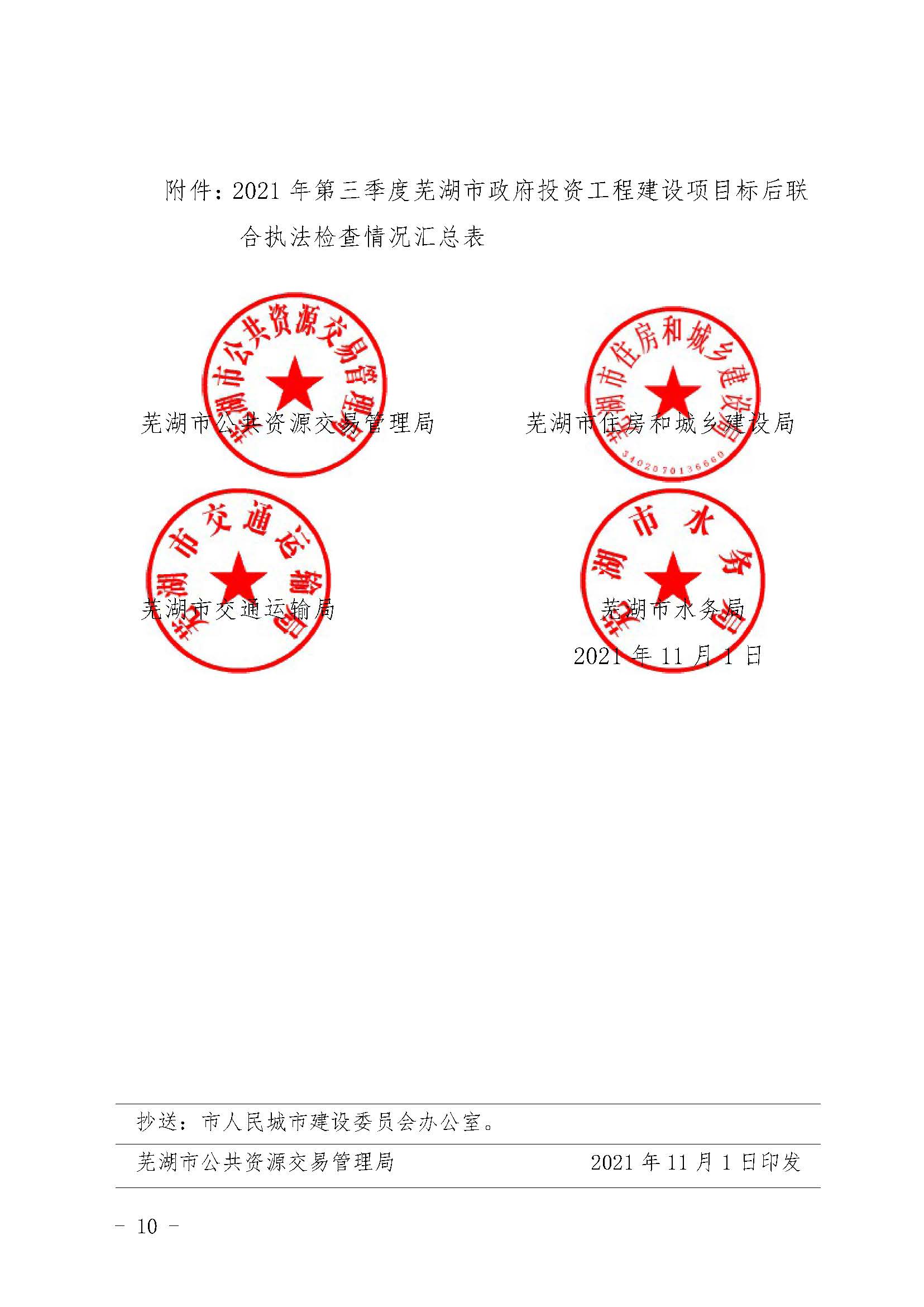 关于2021年第三季度市政府投资工程建设项目标后联合执法检查情况的通报