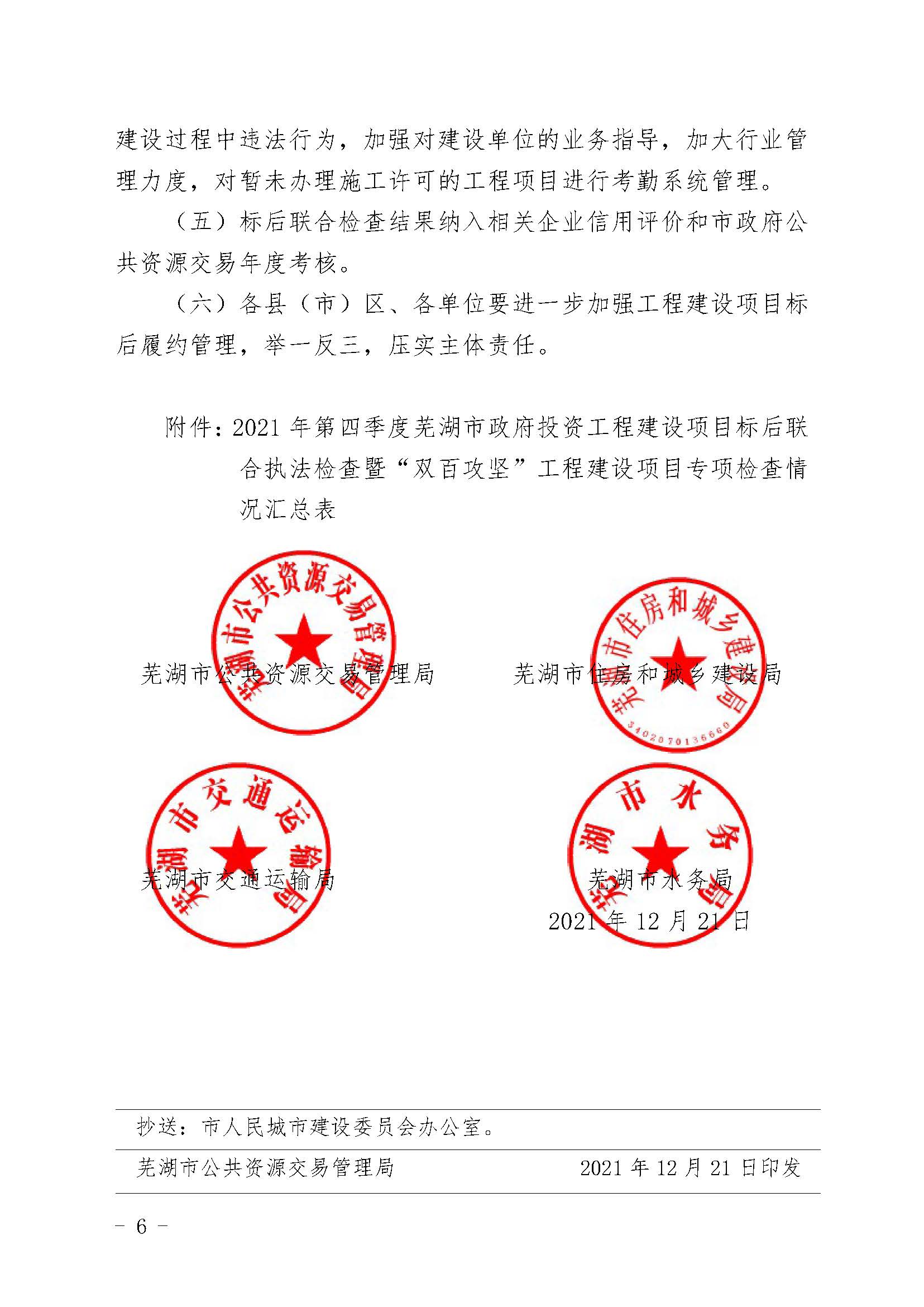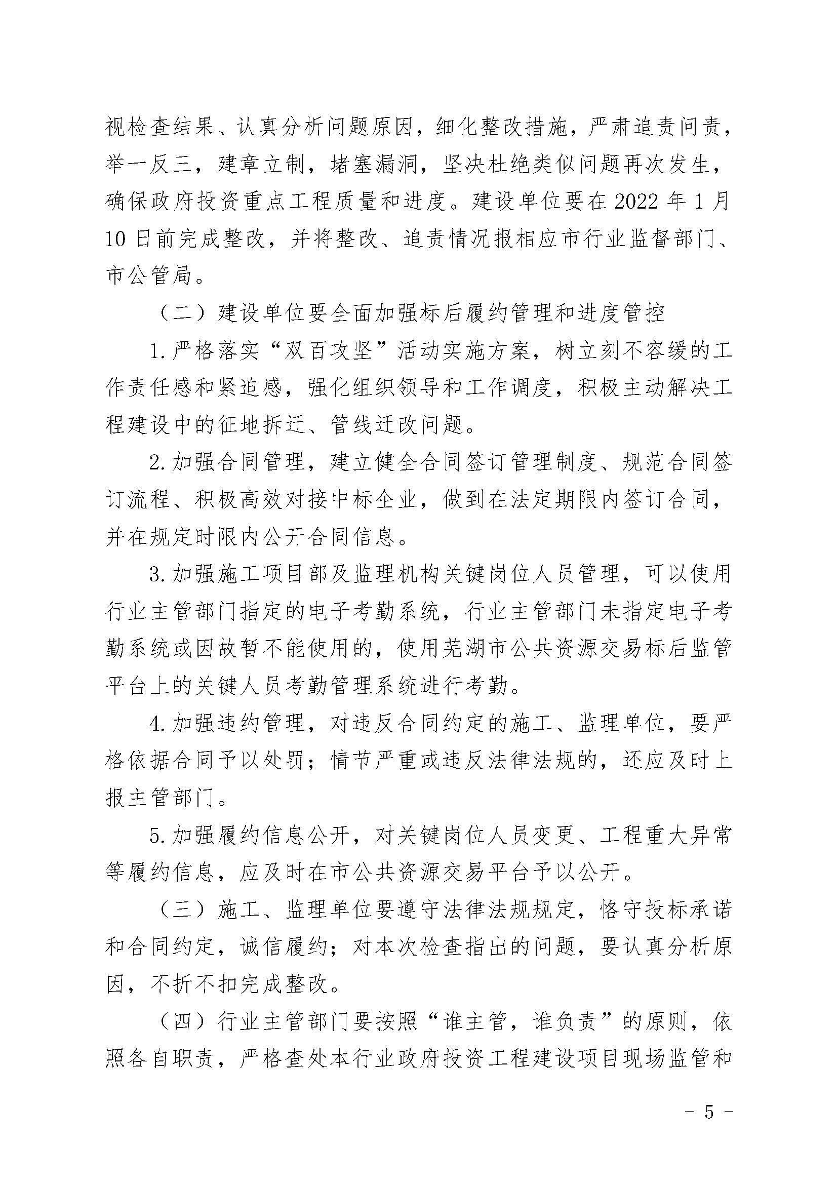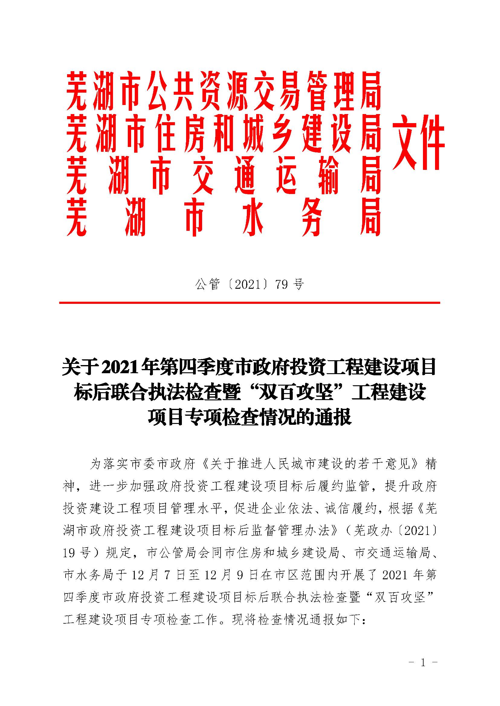 关于2021年第四季度市政府投资工程建设项目标后联合执法检查暨“双百攻坚”工程建设项目专项检查情况的通报