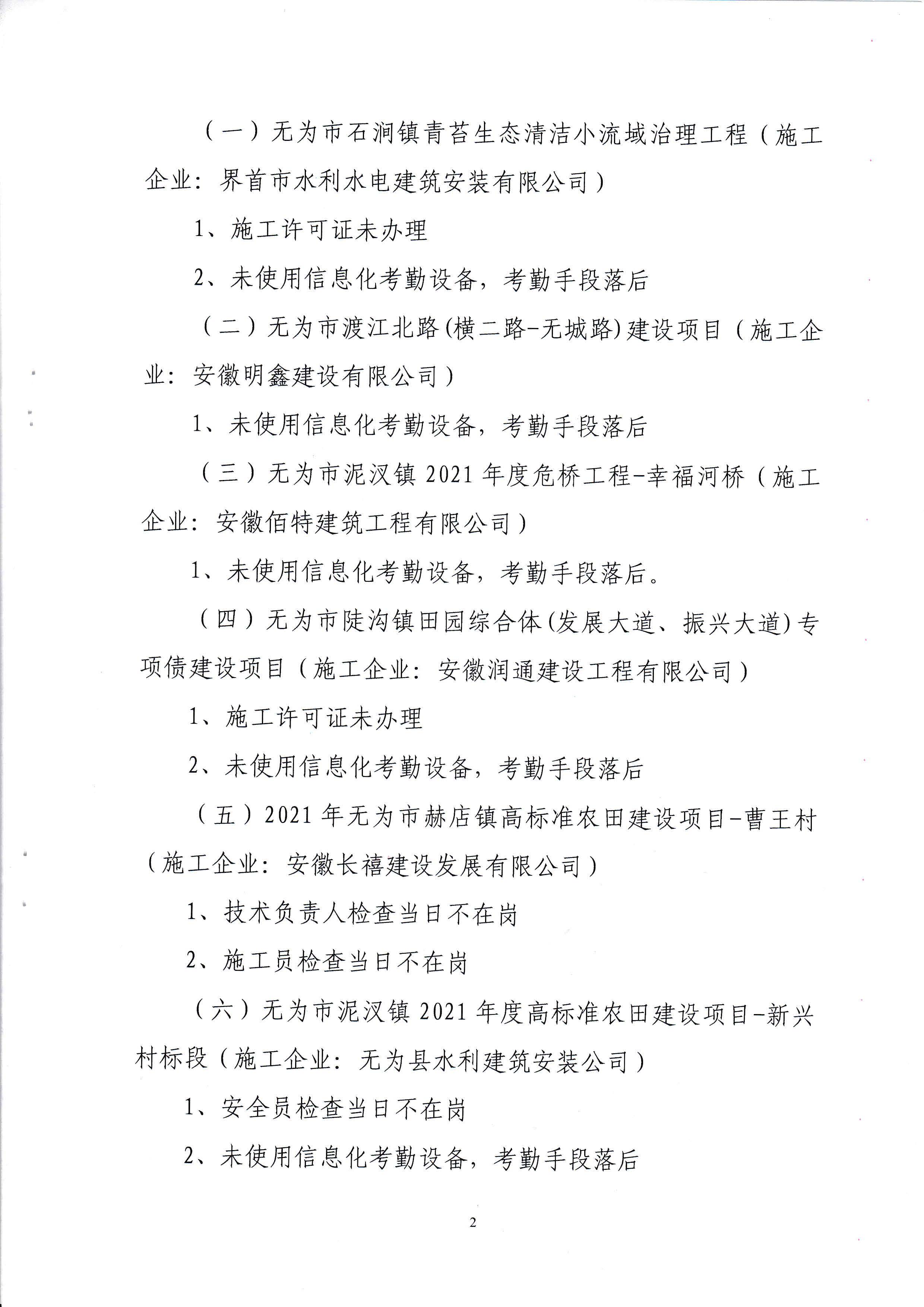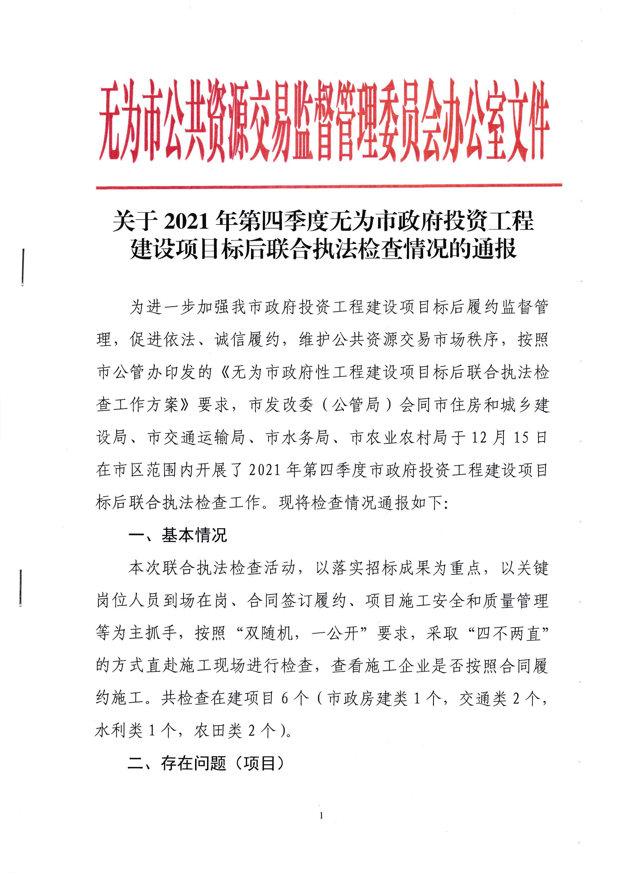 关于2021年第四季度无为市政府投资工程建设项目标后联合执法检查情况的通报