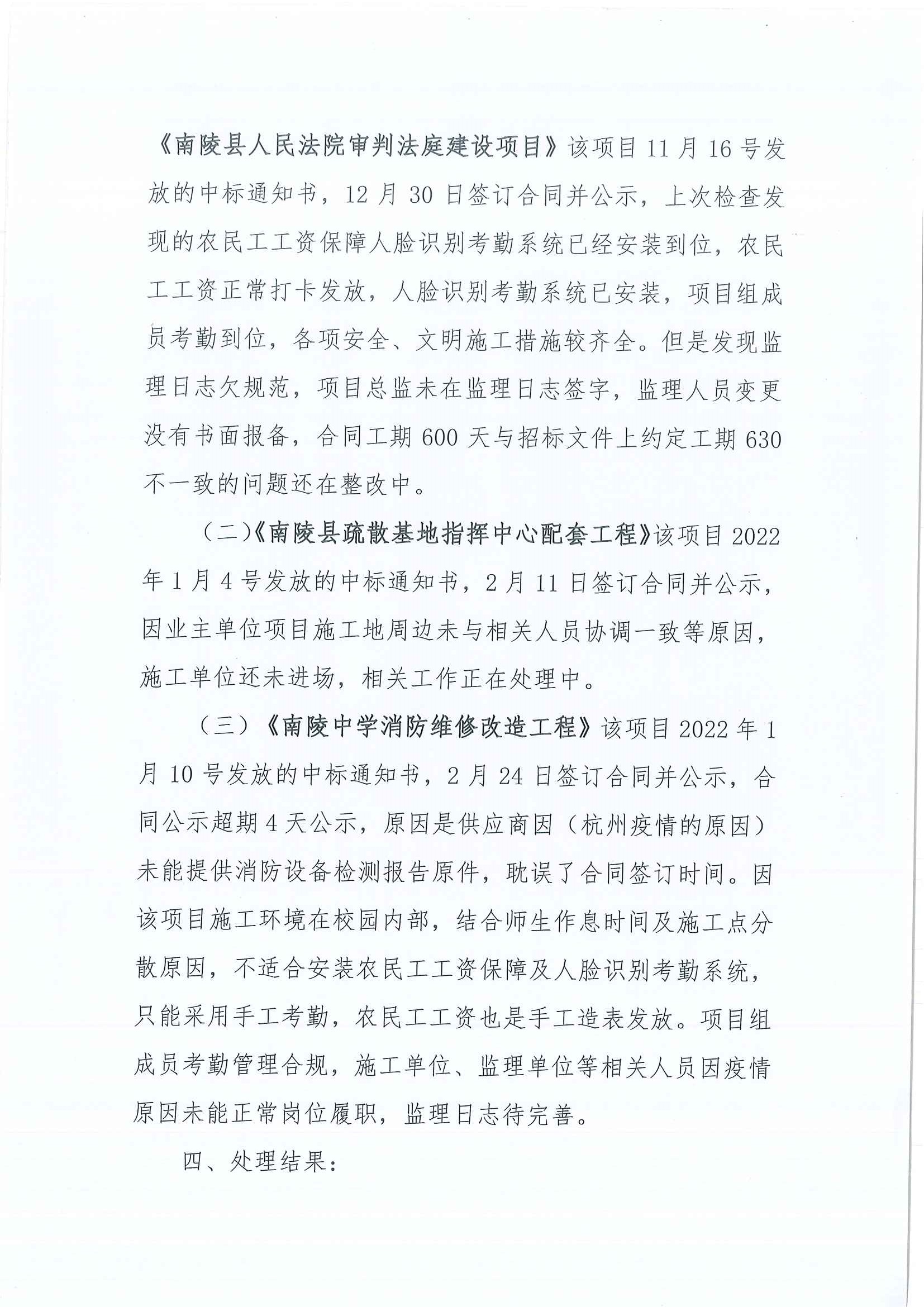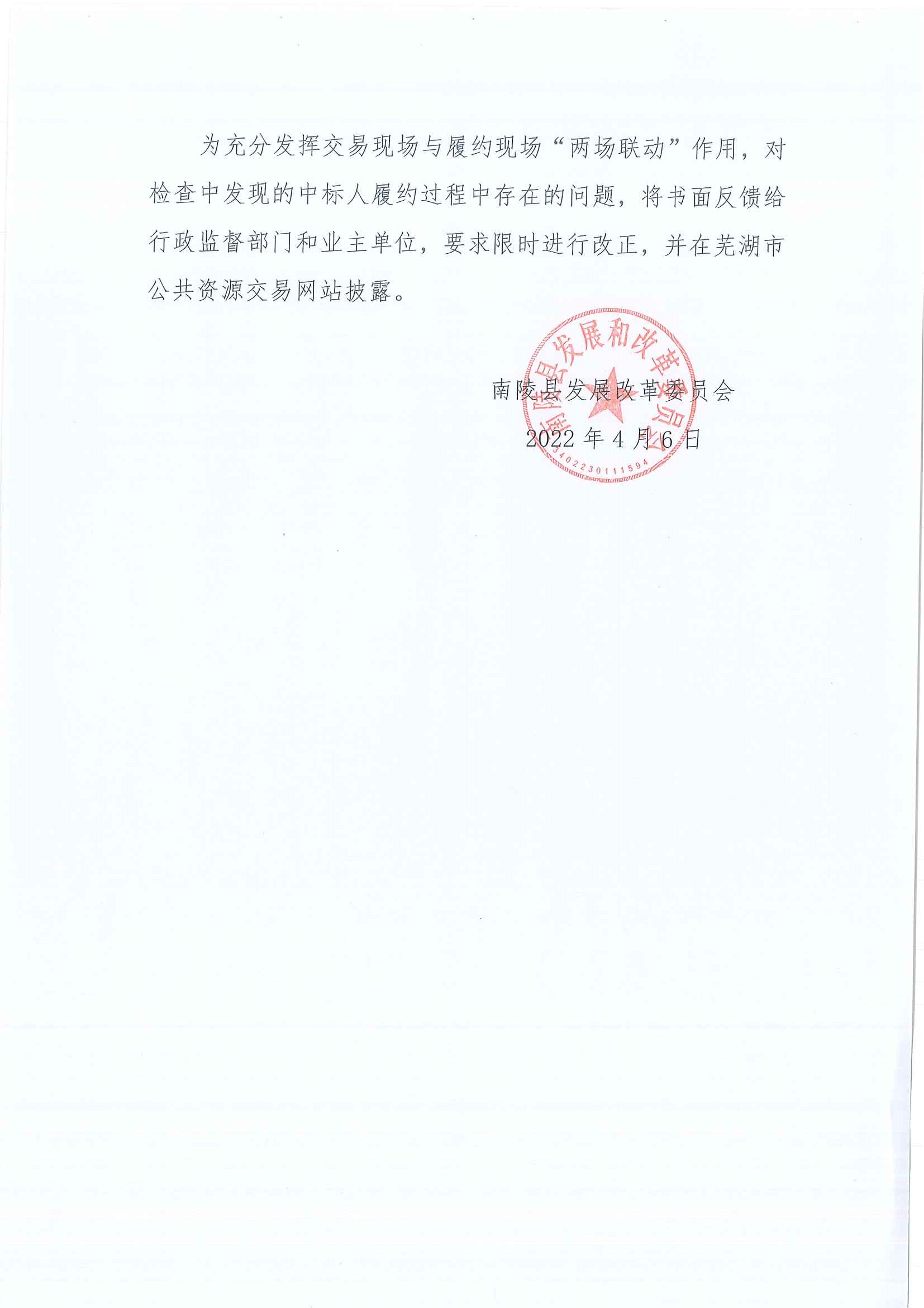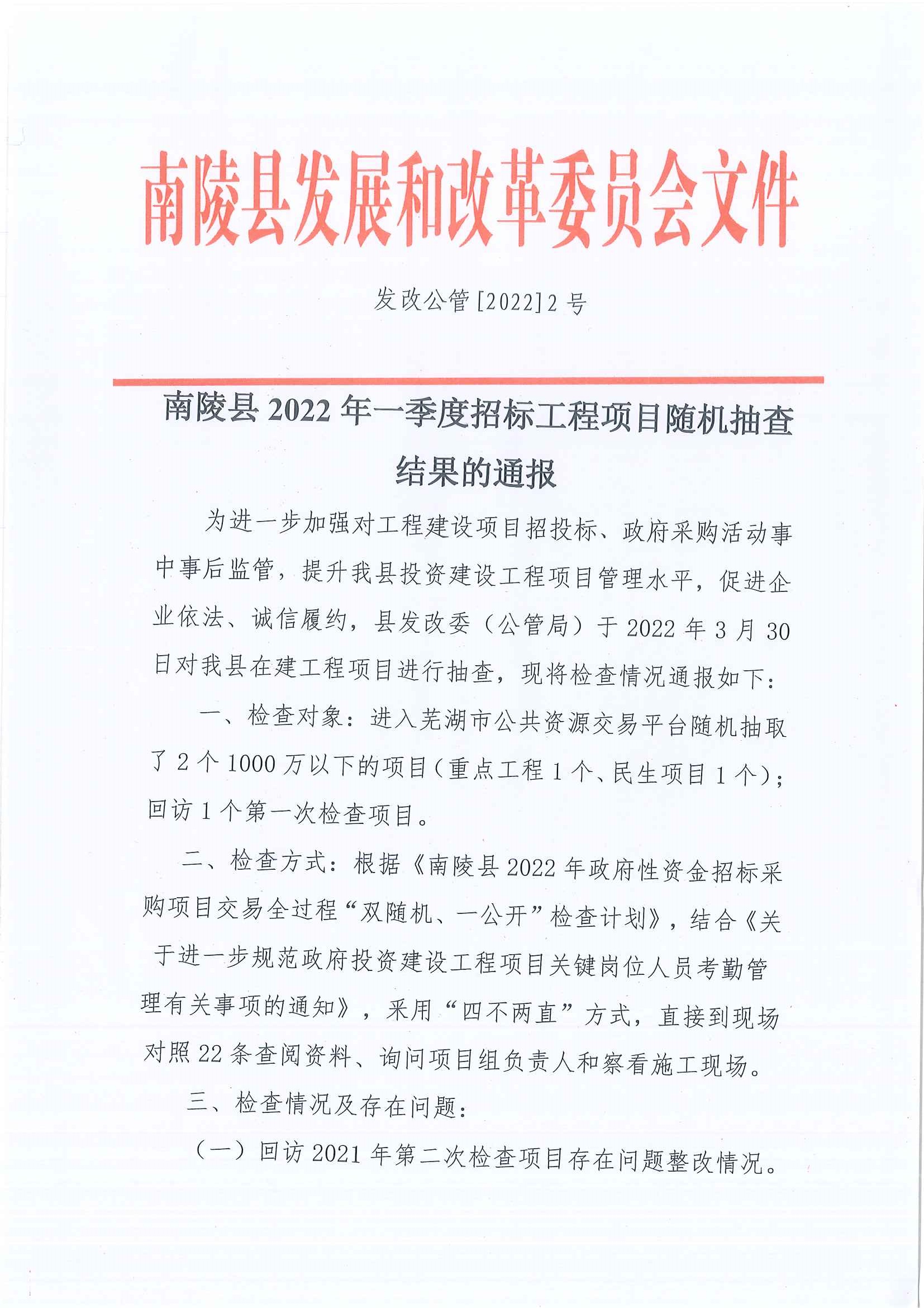 南陵县2022年一季度招标工程项目随机抽查结果的通报