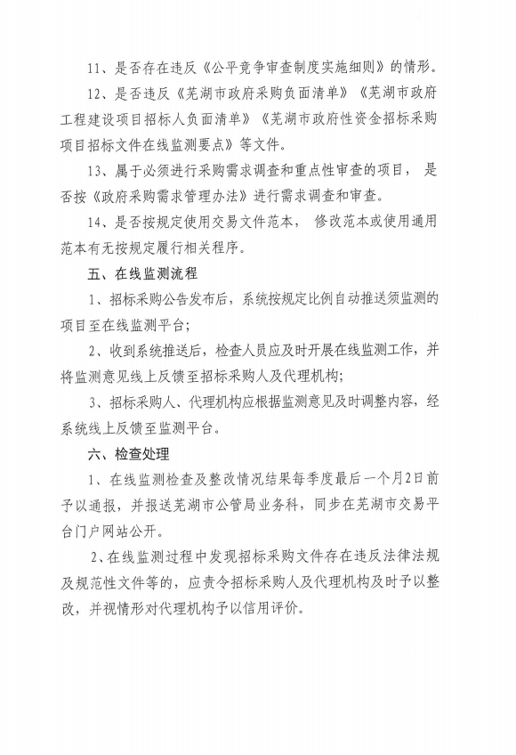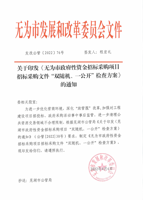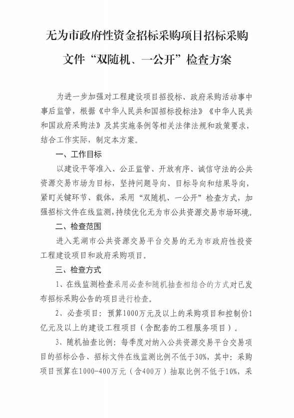 无为市政府性资金招标采购项目招标采购文件“双随机、一公开”检查方案