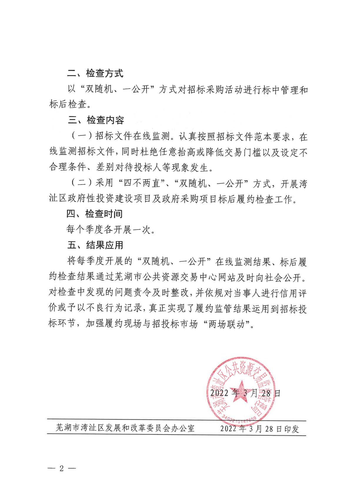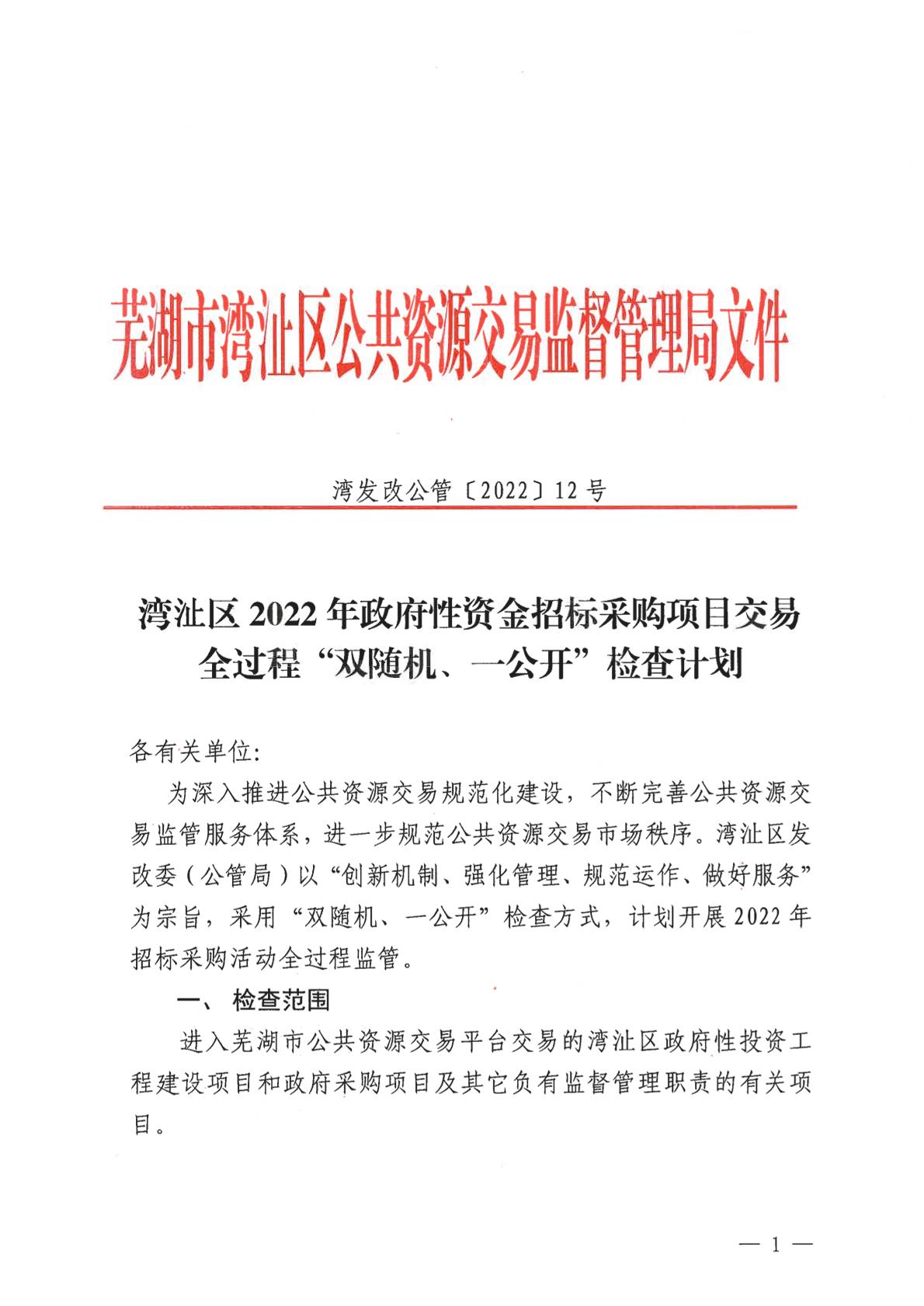 湾沚区2022年政府性资金招标采购项目交易全过程“双随机、一公开”检查计划