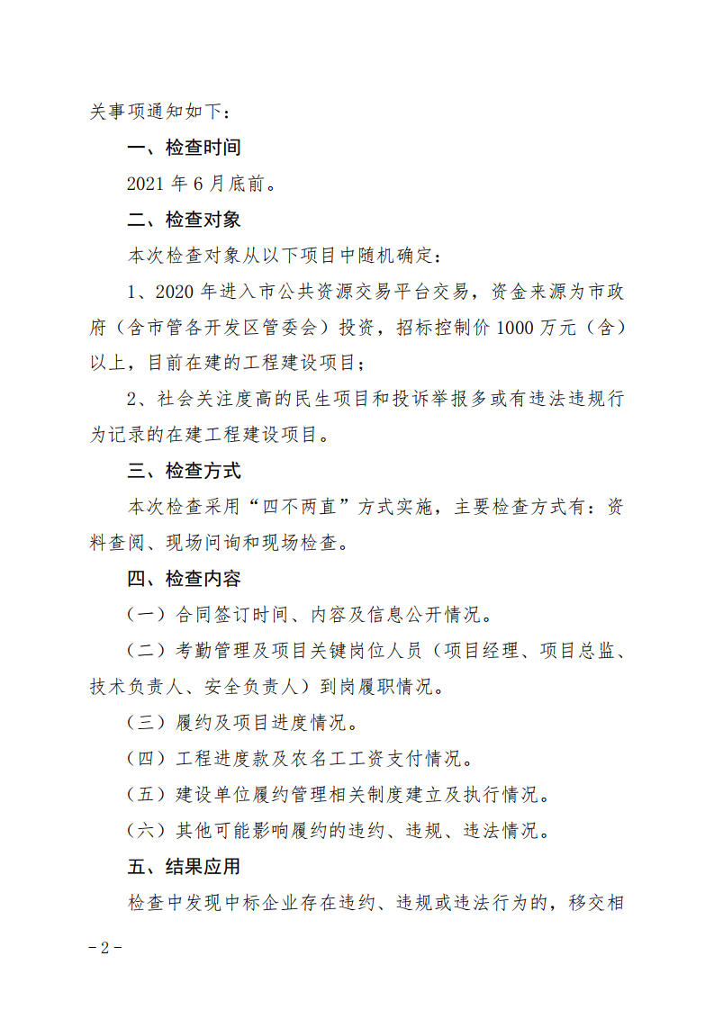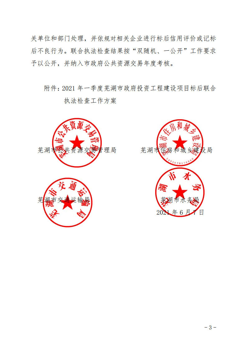 关于开展2021年二季度芜湖市政府投资工程建设项目标后联合执法检查的通知