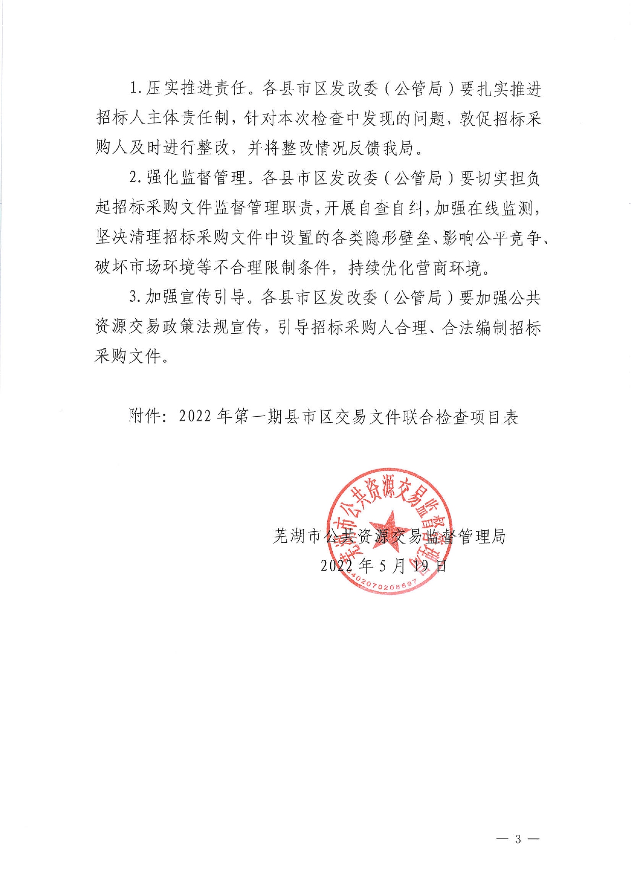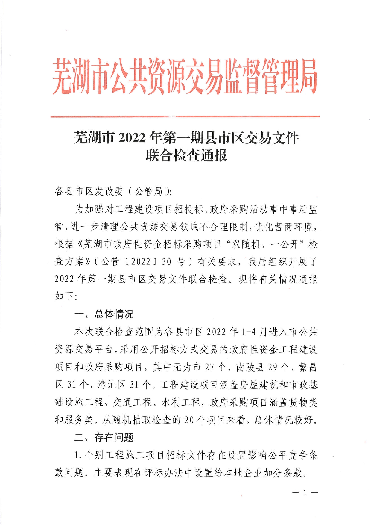 芜湖市2022年第一期县市区交易文件联合检查通报