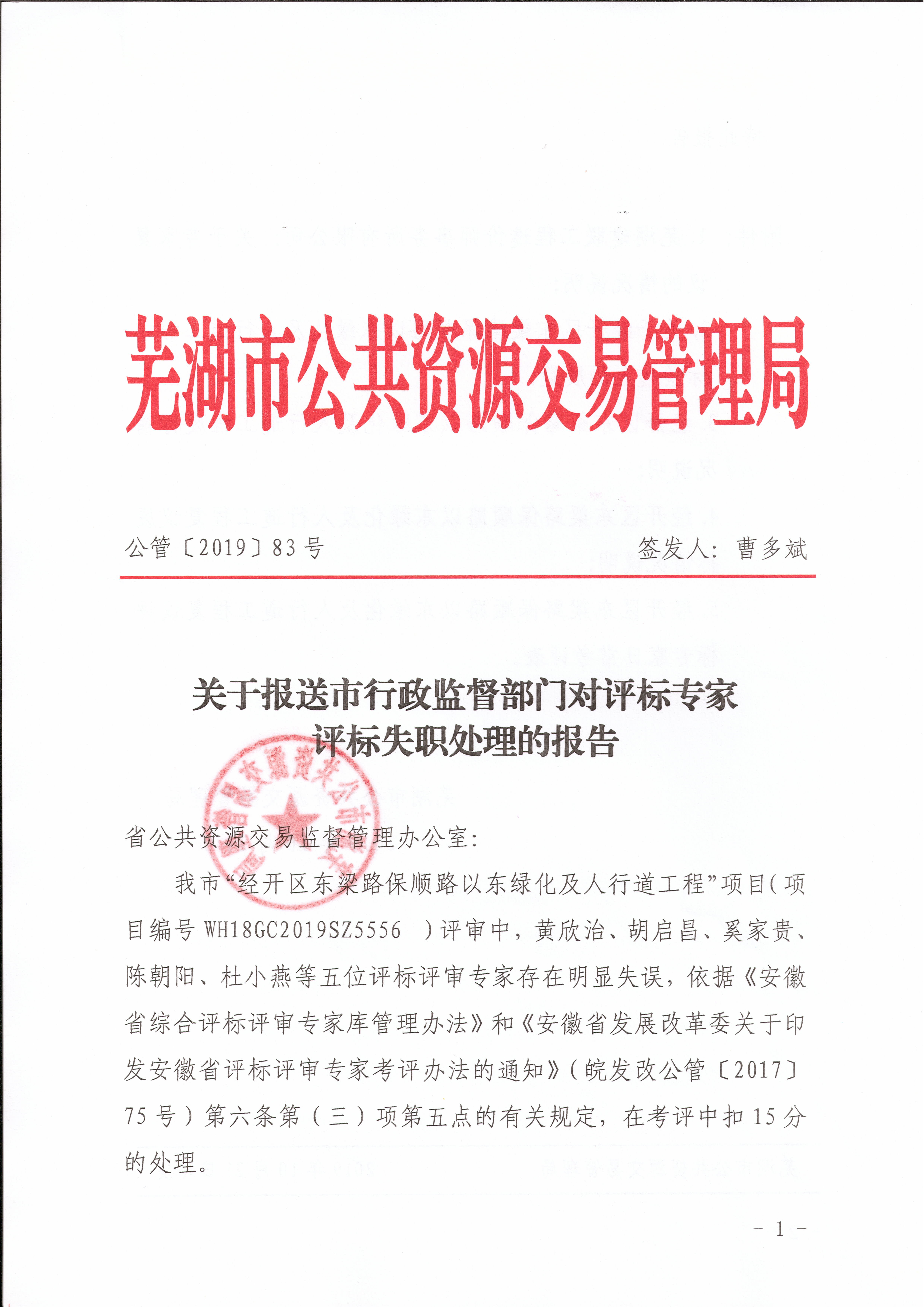 关于对“经开区东梁路保顺路以东绿化及人行道工程”项目评审专家的处理