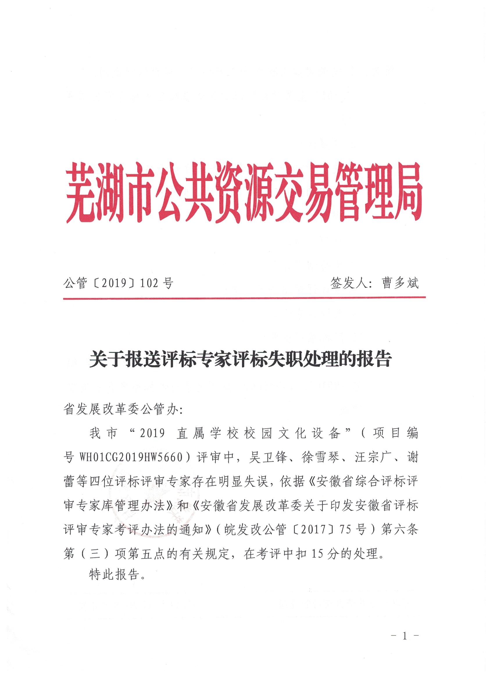 关于对评审专家吴卫锋、徐雪琴、汪宗广、谢蕾四位评标失职处理的报告