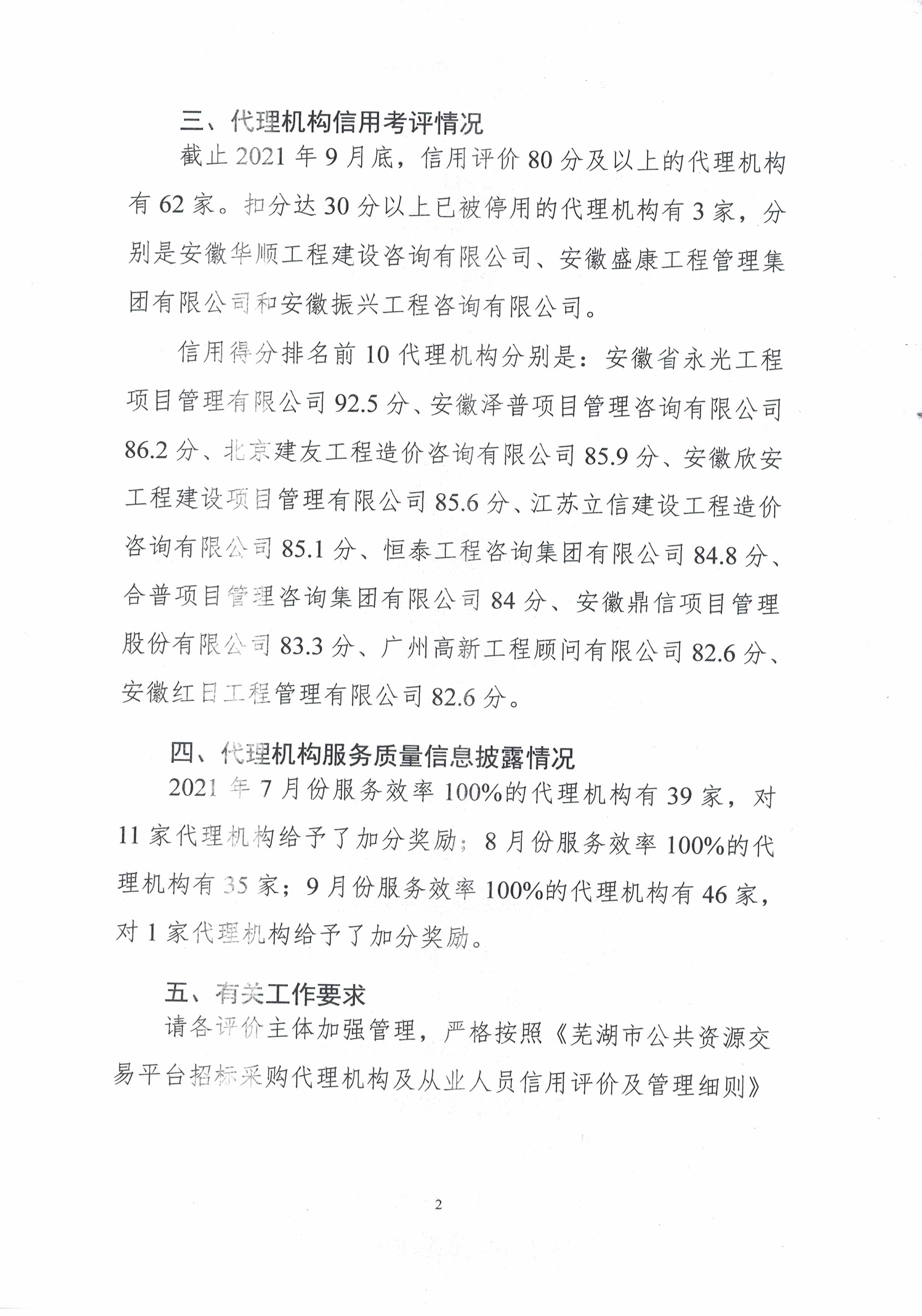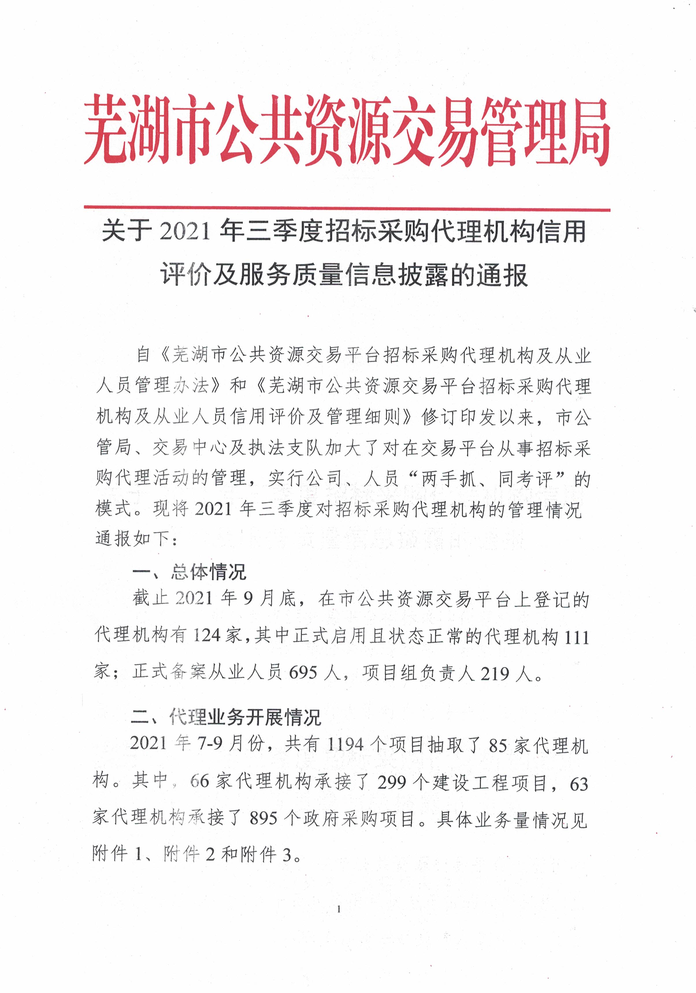 关于2021年三季度招标采购代理机构信用评价及服务质量信息披露的通报