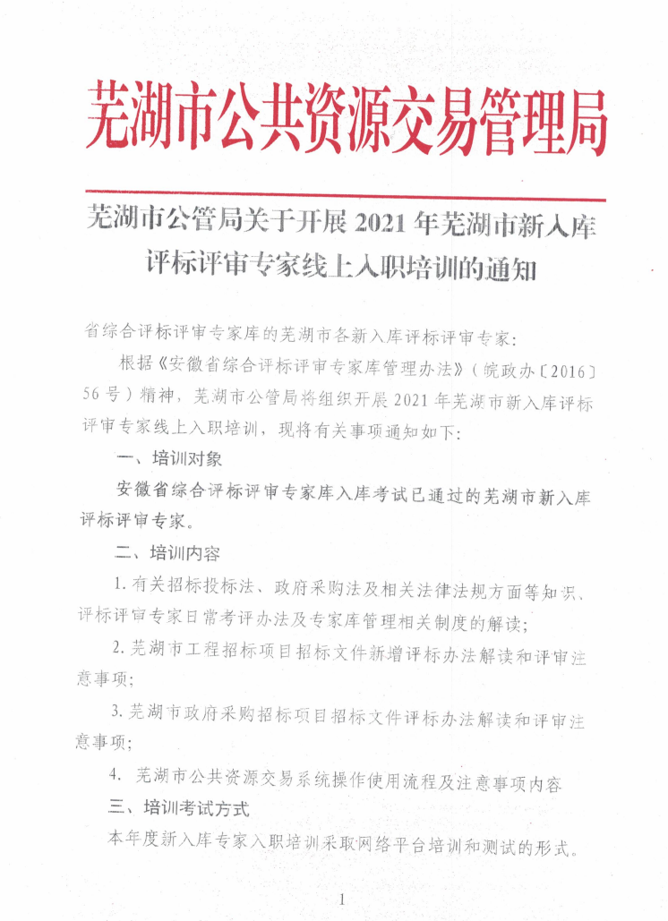 芜湖市公管局关于开展2021年芜湖市新入库评标评审专家线上入职培训的通知