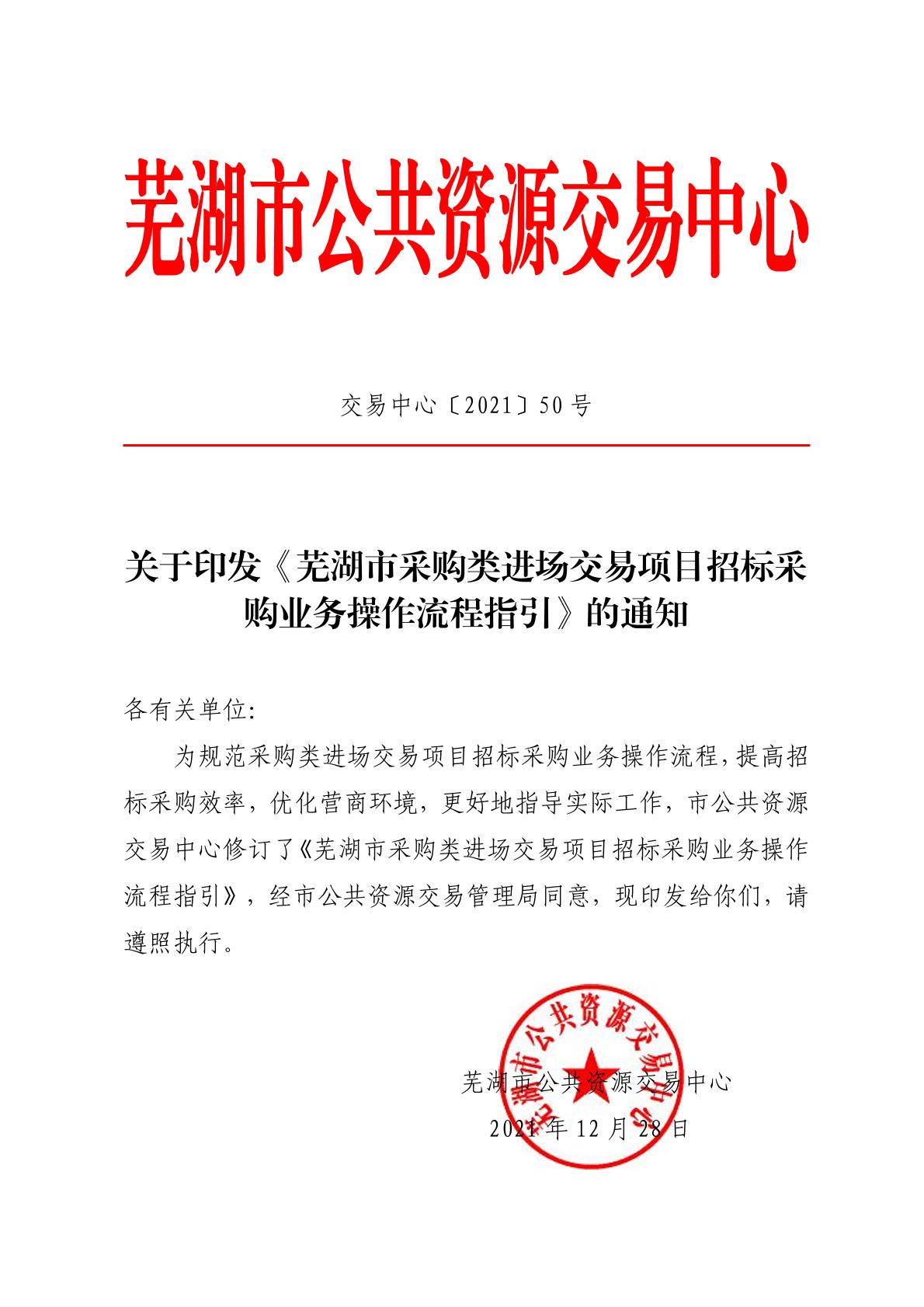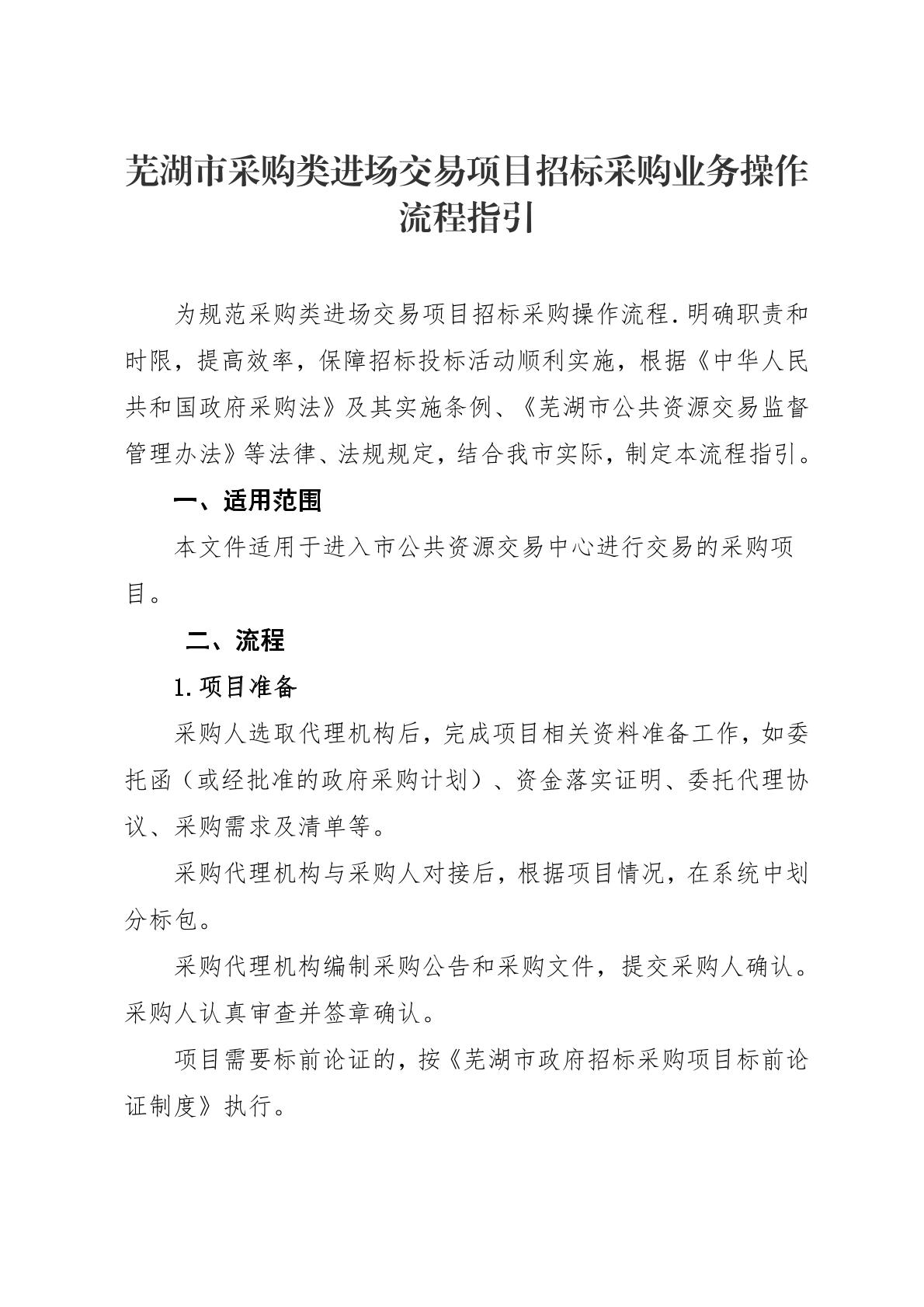 2021关于印发《芜湖市采购类进场交易项目招标采购业务操作流程指引》的通知