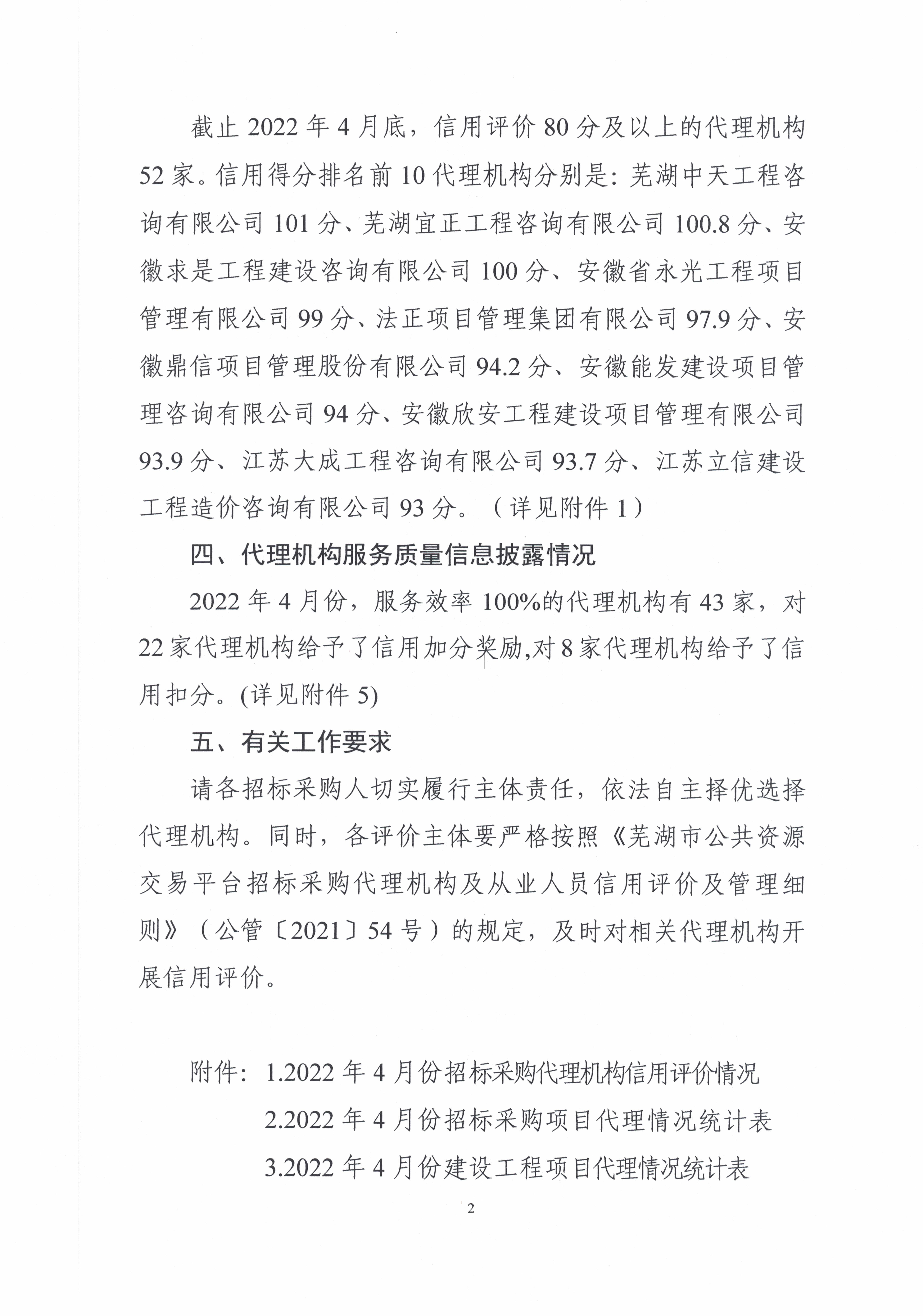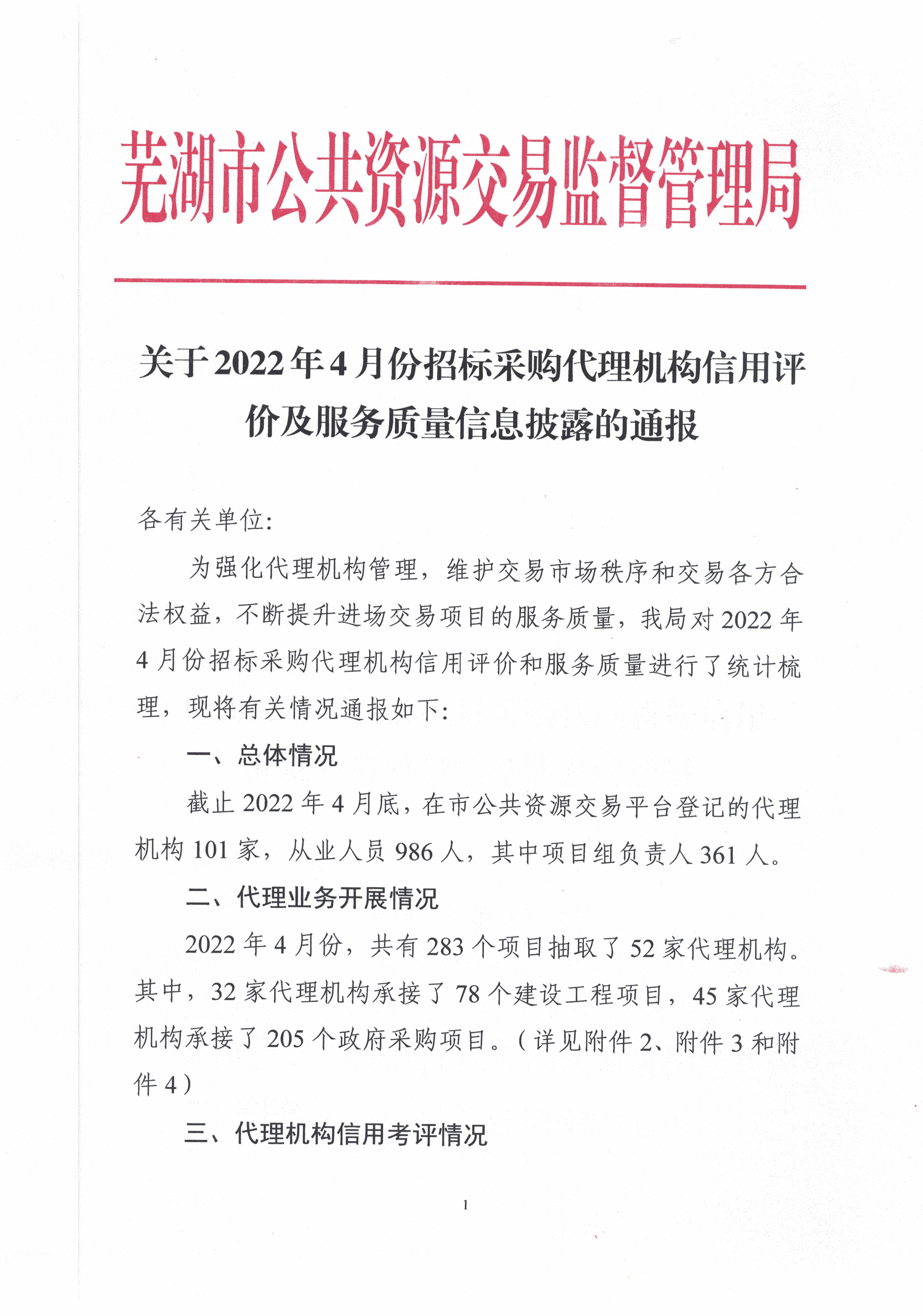 关于2022年4月份招标采购代理机构信用评价及服务质量信息披露的通报
