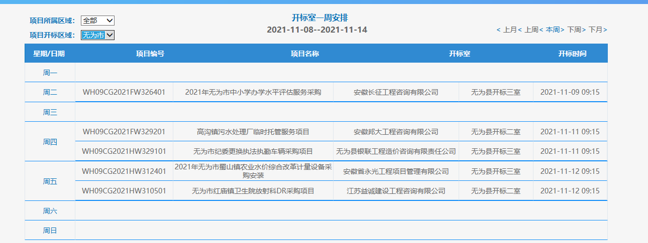 无为市项目一周安排表(2021-11-08--2021-11-14)