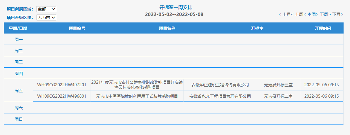 无为市项目一周安排表(2022-05-02--2022-05-08)