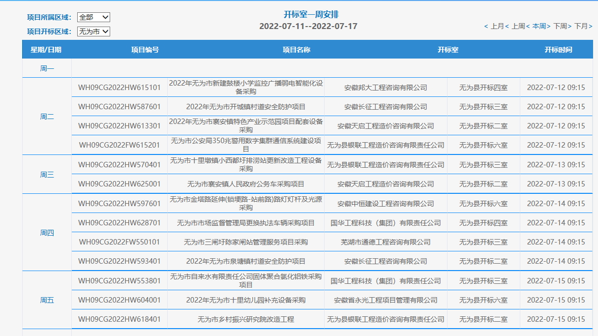 无为市项目一周安排表(2022年7月11日-2022年7月17日)
