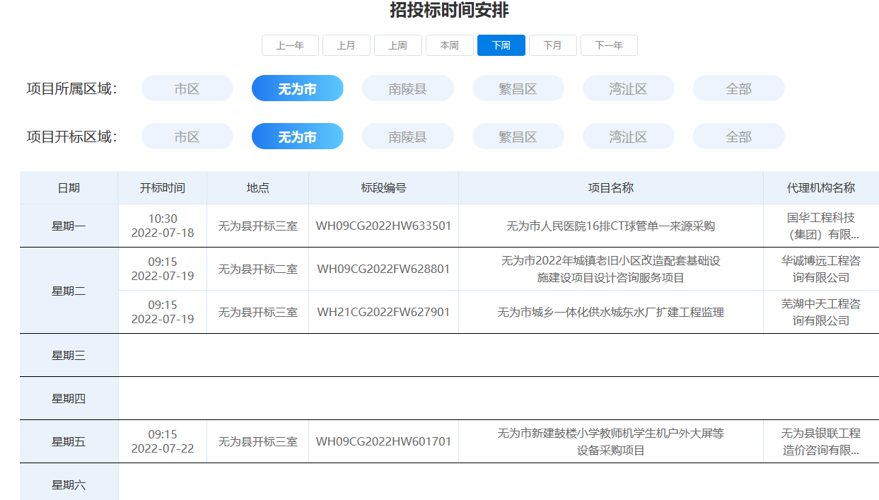 无为市项目一周安排表(2022年7月18日-2022年7月24日)